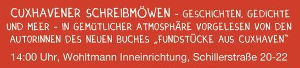 Im Rahmen der vorweihnachtlichen Veranstaltung „Lesen im Laden“ kommen die Cuxhavener Schreibmöwen ins Lotsenviertel. Mit einem Augenzwinkern geben Monika Ahlrichs, Angelika Ehrmann, Susanne Gerdes und Petra Welslau Geschichten und Gedichte aus ihrem Buch „Fundstücke aus Cuxhaven“ zum Besten.